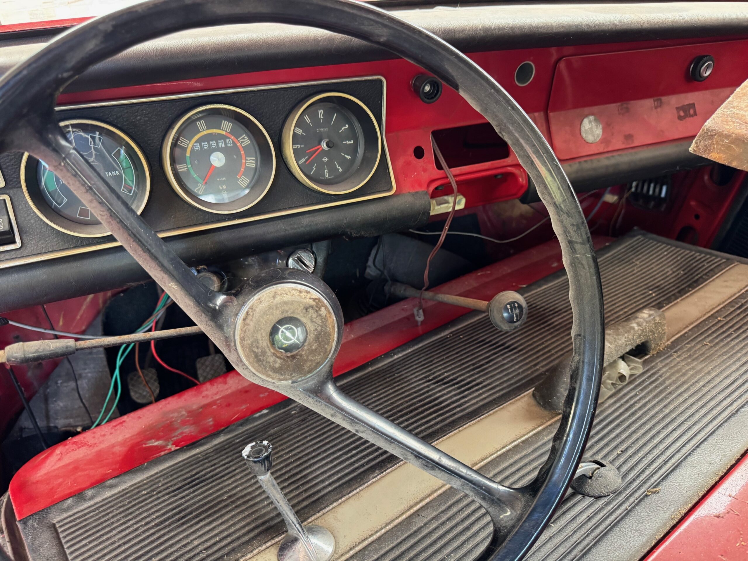 1967 wurde er in Heidelberg erstzugelassen, blieb bis 1984 in 1.Hand bei einem Filialleiter, und wechselte dann für ein paar weitere Jahre nach Mannheim. Ob es sich tatsächlich beim abgelesenen Kilometerstand um 57.000 oder 157.000 handelt, ist nicht überliefert, da der Kadett bereits seit über 25 Jahren in einer Garage parkierte, und auf seine Wiederbelebung wartete.
