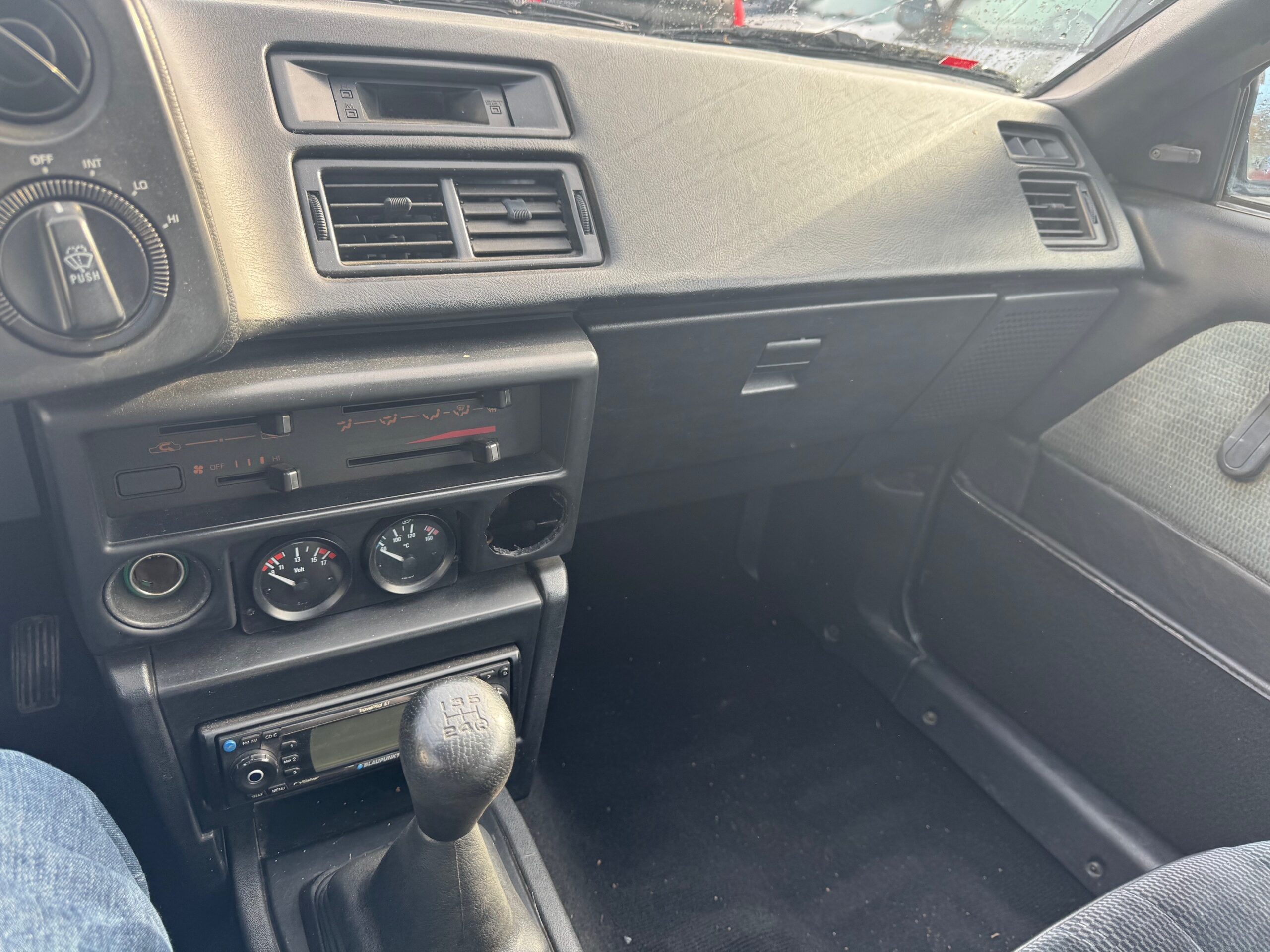Das bestätigt auch der Eindruck im Innenraum, wo nichts unnormal verschlissen oder übermäßig strapaziert ist. Die originalen 2farbigen Sitze sind immernoch straff und gut in Schuss. Ein after Sale Radio kam vor Jahren rein.