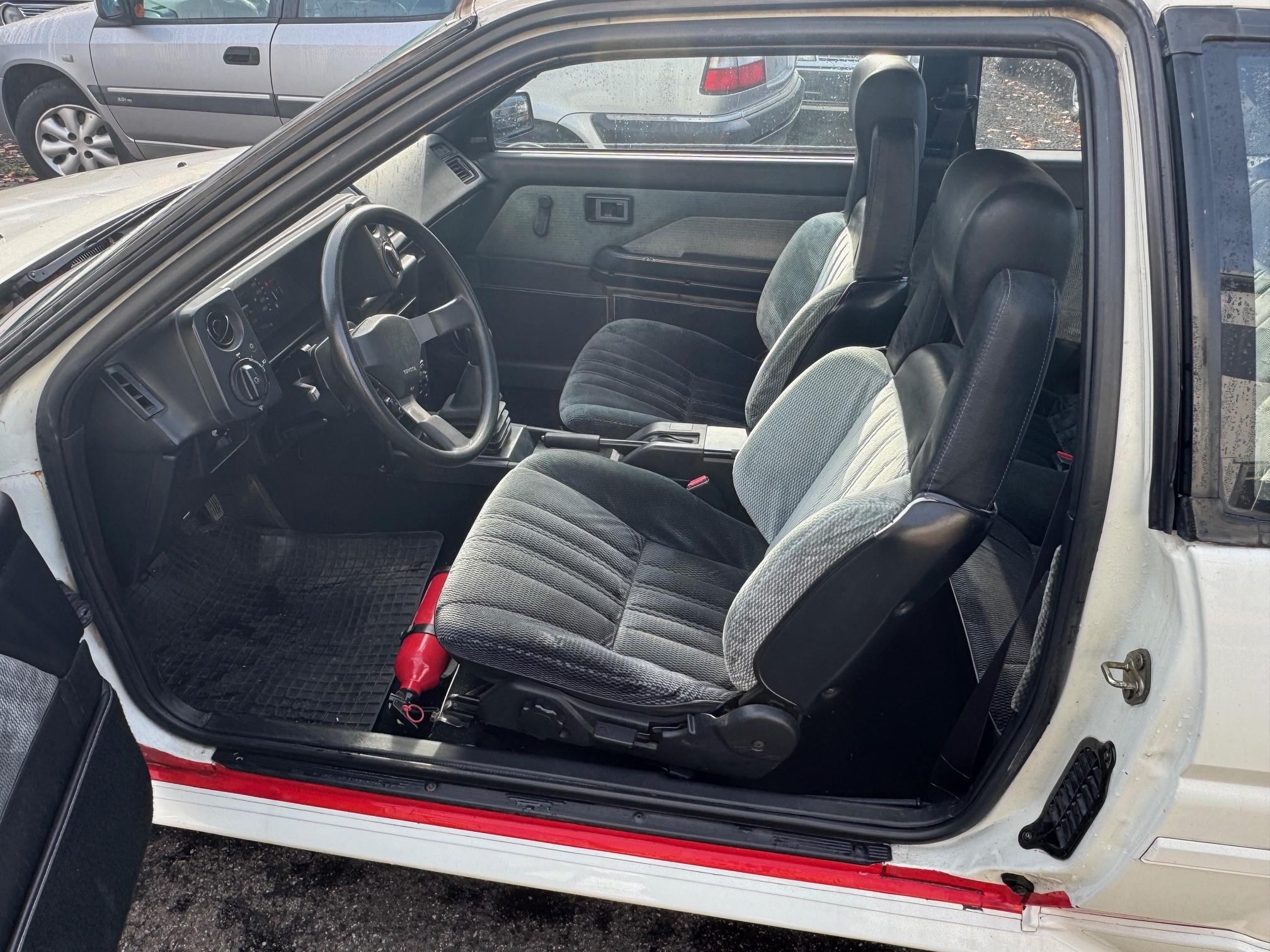 Die zeitgenössischen originalen Postert-Ronal Turbo Felgen mit Semi Slicks stehen dem Auto hervorragend, wer lieber originale Felgen möchte, dem können wir vermutlich aus unserem Bestand ebenfalls helfen. Die diversen Toyota Classic etc. Aufkleber können entfernt werden.